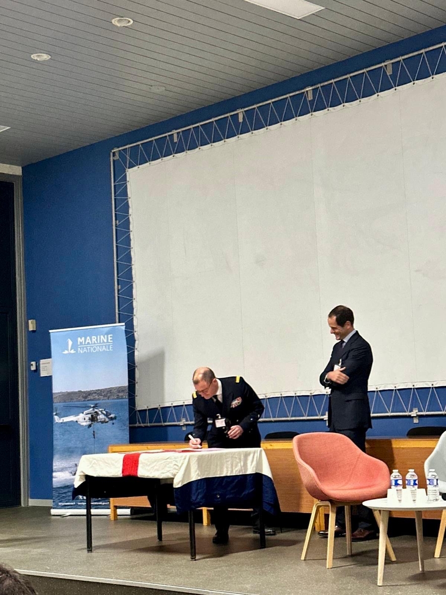 À l’occasion de la Rencontre Marine-Armateurs, organisée le 18 novembre à la base des fusiliers marins et commandos de Lanester, la Marine nationale et Armateurs de France ont signé une déclaration d’intention prévoyant le recrutement, dès 2026, d’un officier de liaison dédié au shipping. Signée par Edouard Louis-Dreyfus, président d’Armateurs de France, et par le vice-amiral Emmanuel Slaars, sous-chef d’état-major « opérations aéronavales », par délégation du chef d’état-major de la Marine, cette déclaration renforce la Coopération navale volontaire (CNV).
