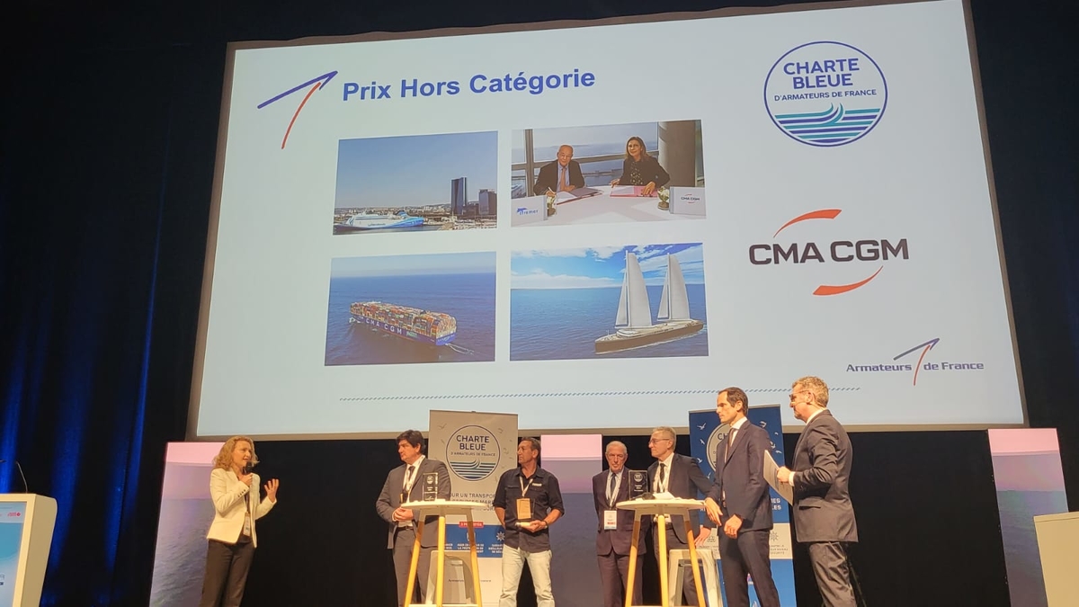 Armateurs de France a eu le plaisir de décerner les Trophées de la Charte Bleue à l’occasion des Assises de l’Économie de la Mer, en présence des principaux acteurs du secteur maritime. Le Trophée 2024 de la Charte Bleue a été attribué à l’association Expédition 7e Continent pour son initiative Exploration Bleue. Un prix Hors Catégorie a également récompensé CMA CGM pour l’ensemble de ses engagements en faveur d’un transport maritime plus responsable. La séquence s’est clôturée avec la remise d’un prix spécial à la Marine Nationale par Edouard Louis Dreyfus.
